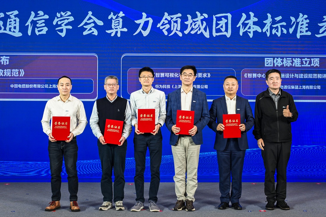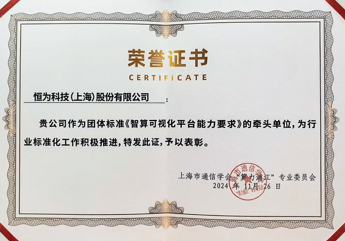 算力領域團體標準發布與立項授牌環節,由恒為科技牽頭、中國信通院華東分院等單位共同參與編制的《智算可視化平臺能力要求》團體標準正式立項授牌。同時,鑒于恒為科技在推動行業標準化進程中的突出貢獻,上海市通信學會“算力浦江”專業委員會為恒為科技頒發了表彰證書。